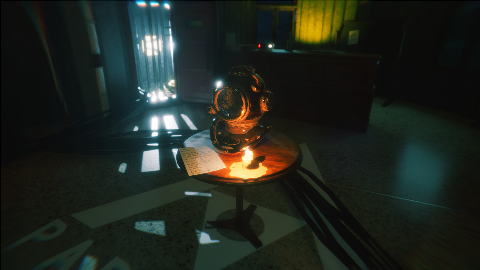 In P1: Anchor Light, Deadbolt Interactive ci porta in un faro opulento e decadente, dove ogni angolo nasconde un segreto. L’ambientazione è il vero protagonista, con il suo mix di eleganza retrò e inquietudine palpabile, che ricorda le suggestioni di Rapture ma con un’anima più claustrofobica e mentale. Il faro, un tempo simbolo di guida, diventa il fulcro di un incubo visivo e sonoro, con entità che sussurrano e si manifestano in modi sempre più disturbanti.